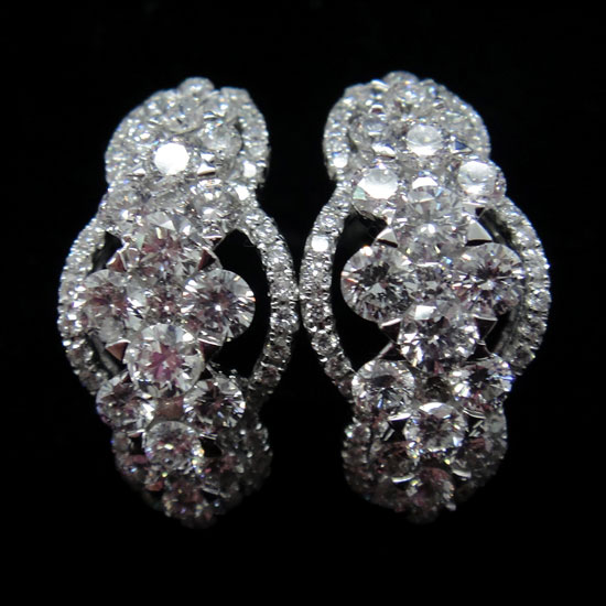 Showcased is a pair of earrings finely crafted with 18K gold and diamonds. The curved design brings a new fun touch of elegance to the pair. The earrings go well with your well-picked dress for your special occasions.