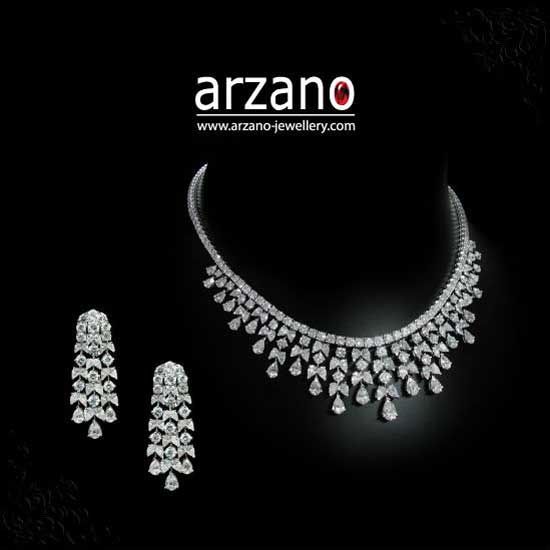 This exquisite set of diamond jewelry offers a bib necklace and a pair of matching earrings. The certified pear and round diamonds are giving off enviable sparkles. The set makes decent and classy jewelry for women.