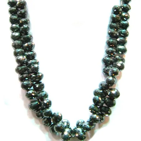 The admirable ladies' necklace flaunts a double-strand design meticulously set with twinkling diamonds. Each diamond is finely cut into a precise oval shape, which reveals a touch of modesty. The high-luster black color showcases a sense of mysterious beauty that captures your heart instantly. This ravishing diamond necklace blows your mind away with its irresistible beauty.