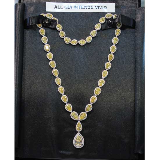 This elegant ladies' necklace turns heads with the beautiful vivid design. Perfected with sparkling diamonds, this gorgeous necklace is simply irresistible. Dress up for a special occasion with this twinkling diamond necklace.