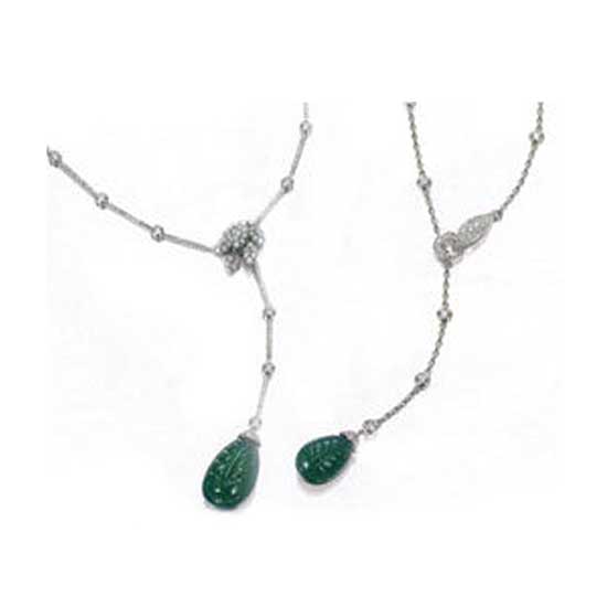 This is a gorgeous ladies’ necklace that boasts a romantic teardrop stone in vibrant green. It is fully embellished with shimmering small diamonds for added glamor. Meticulously crafted, this diamond jewelry is surely an ideal addition to complete your jewelry box.