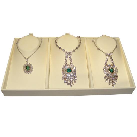 These are three diamond drop necklaces with white gold. They feature green diamonds in oval, cushion and heart shapes respectively. They come with chains in different styles.
