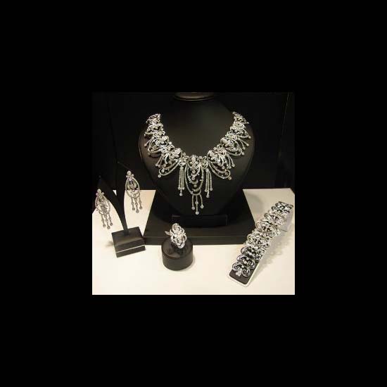 18K white gold jewellry set with a necklace, a bracelet, a ring and a pair of earrings