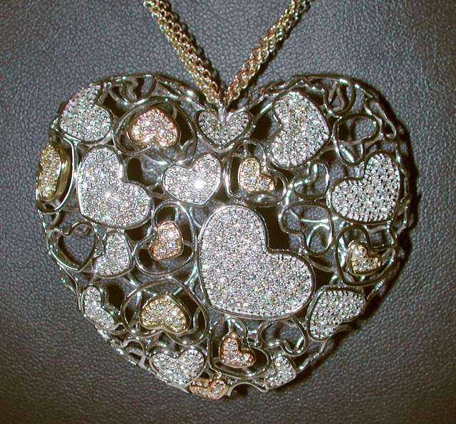 A diamond pendant in heart shape.