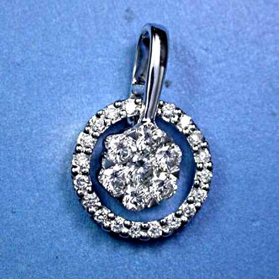 This diamond pendant features a hexagonal shape embraced by a circular ring for an adorable appearance. Quality diamonds are paved over the pendant with perfect handcraft. This glamorous pendant can be matched with other accessories for a refreshing image.