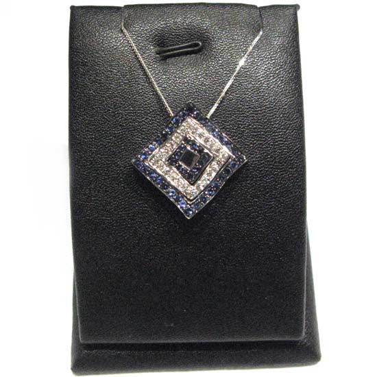 The stunning pendant appears in a rhombus, with several smaller rhombus figures within. The pendant is shining in different radiance with various materials of silver, white gold and diamond. The unique design gives the pendant a resemblance of a labyrinth.