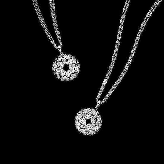 As shown here is a diamond pendant plated with 18K gold. The round-shaped piece features shiny diamonds. Simply add glamor to your ensemble with this grand pendant.