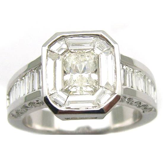 As shown is a fine designed ring with 0.35cts round diamonds, 0.72cts emerald cut diamonds, 1.48cts baguette diamonds and 9.250g gold. This diamond ring is best for gift for ladies of any ages.