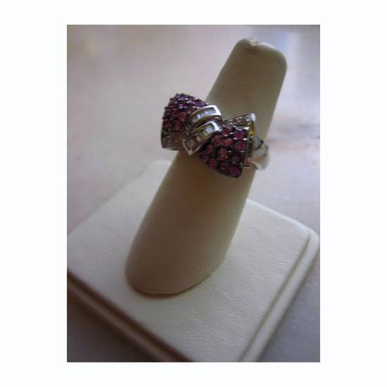 The finger ring flaunts the design of a bow tie for a hint of elegance. The 18K white gold construction ensures lasting elegance. The dazzling diamonds and sapphires make it stand above the rest.