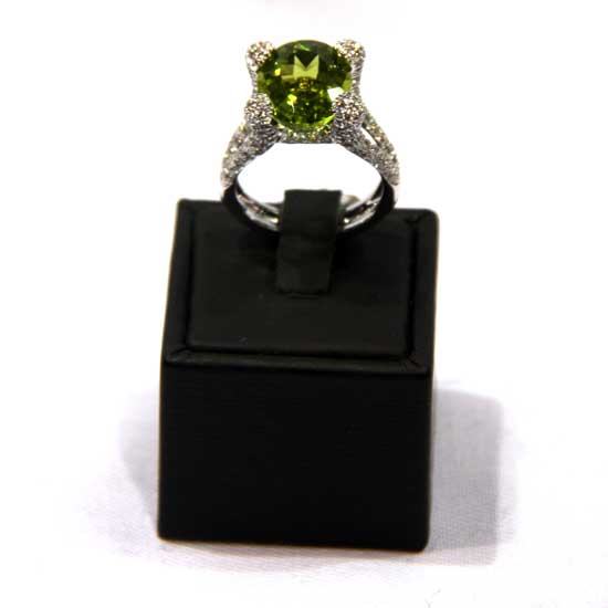 The diamond ring features a dual-band design. The semi-precious stones and diamonds have exquisite polished details to create enchanting radiance. This diamond ring makes a pretty way to complement your fine jewelry collection.