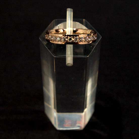 This diamond ring comes with a ring of loose diamonds sturdily set on the frame. The rose gold plating adds a sense of uniqueness. This ring is an excellent gift for your beloved ones.