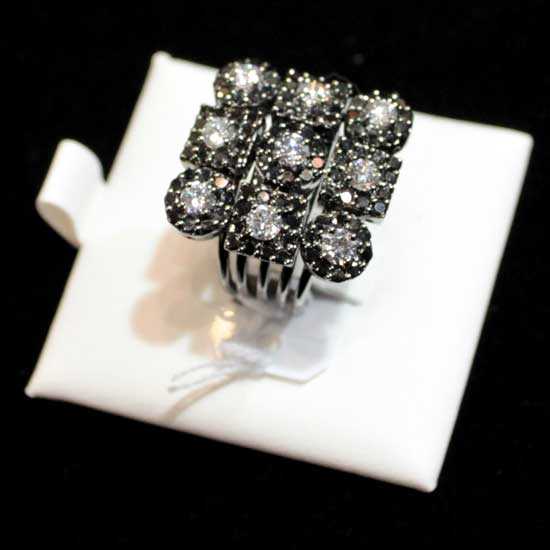 This South African 18K black diamond ring boasts a touch of sophistication with its modern square-shaped design. The black and colorless round brilliant-cut diamonds complement each other perfectly. Spice up your outfit with this gorgeous diamond ring.