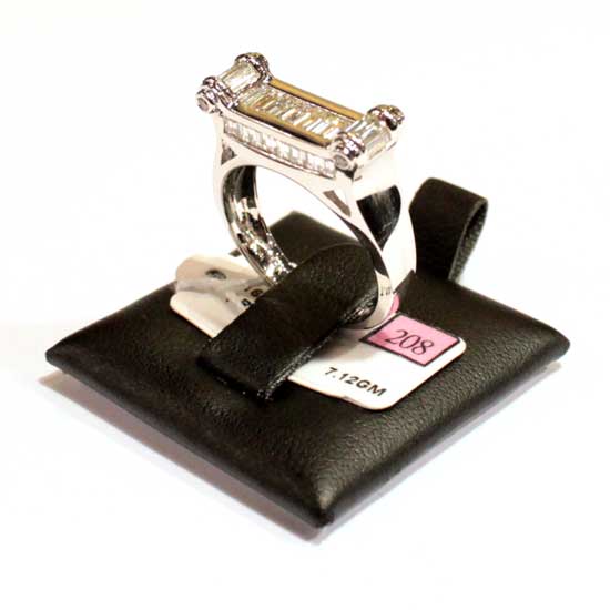 This exquisite 18K white diamond ring boasts a touch of sophistication with its modern rectangular-shaped design. The dazzling emerald-cut diamonds are flawlessly cut and beautifully assembled. Spice up your outfit with this gorgeous diamond ring.