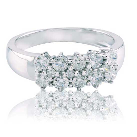 Displayed here is a finger ring completed with a sleek band. The band is embedded with a glamorous cluster of well-cut diamonds. This piece can make a stunning gift for your beloved one.