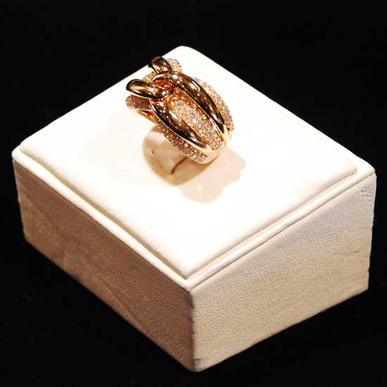 Photographed is a ring coming with a design that suggests modern elegance. The ring is well crafted with 18K rose gold and gleaming loose diamonds totaling 2.26 carats. This ring compliments any style with ease.