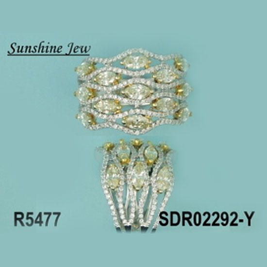 Catching attention is this florid masterpiece crafted from 18K yellow and white gold. The embellishment of gleaming diamonds adds style and sparkles to the picture. The ring is sure to impress on your special day.