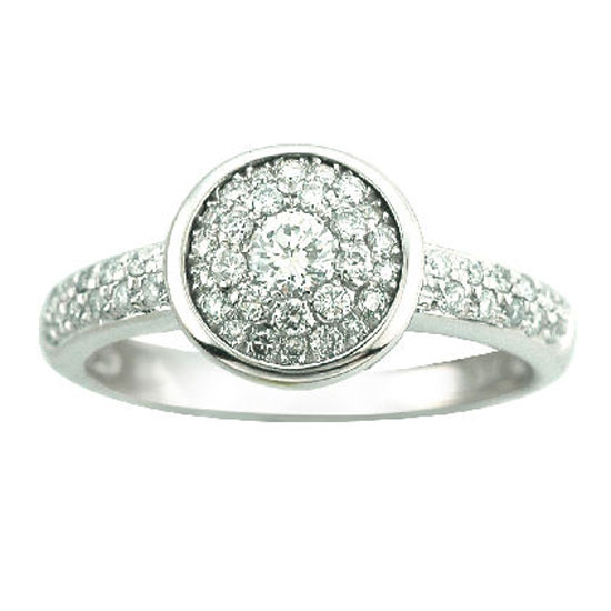 Presented here is a fascinating diamond ring that comprises of a magical head with numerous stones. The band of the ring is also lavishly decorated for a glamorous look. This well crafted ring is a suitable choice for engagement purposes.