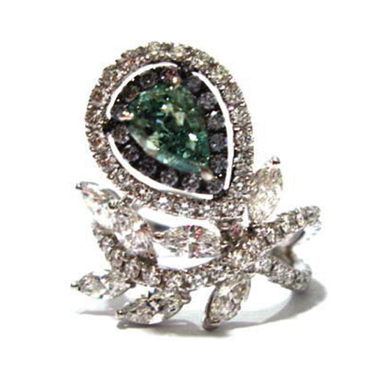 The dazzling ring is finely made of fancy color diamonds crafted from rough to intricate settings. The ring distinctively sparkles with fresh appeal, bursting with youth and natural beauty. The innovative ring makes it a wonderful addition to your jewellery collection.