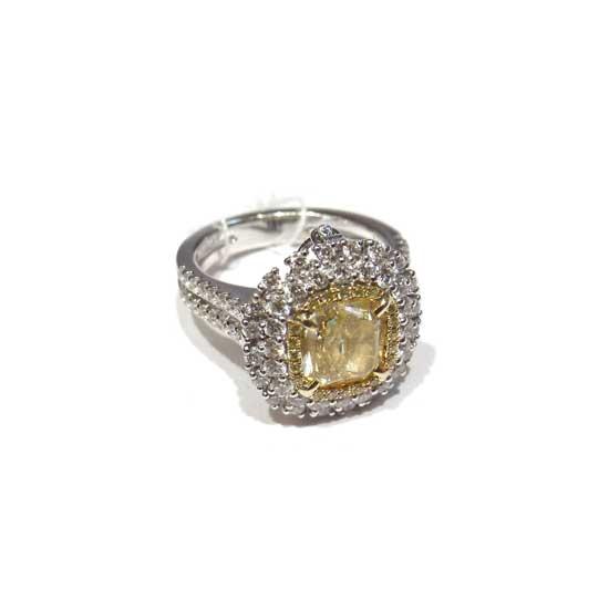 This magnificent diamond ring features a 3-carat yellow diamond stone for an exquisite touch. Crafted of 18K gold, the ring exhibits a highly polished finish. The dazzling diamond ring is sure to create a sparkling and gorgeous effect.