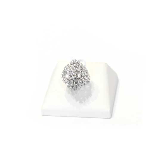 This elegant ring has a surface encrusted with loose diamonds. The body of the exquisite ring is finely constructed from white gold. The well-designed piece is a great addition to your jewelry collection.