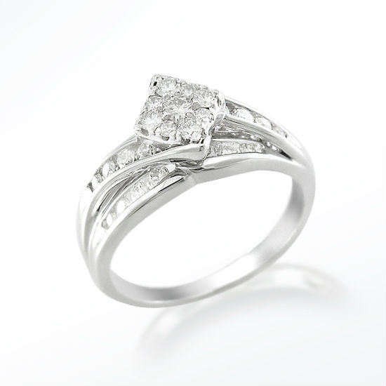 Shoulders of the ring adopt multi-stranded design with multiple diamond embellishment.