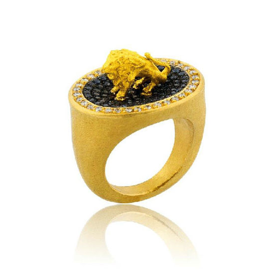 This finger ring comes with a lion design for a unique touch. It is crafted with brilliant-cut diamonds and precious sapphires for added elegance. This diamond ring surely is a great item for adding some glamor to your slender finger.