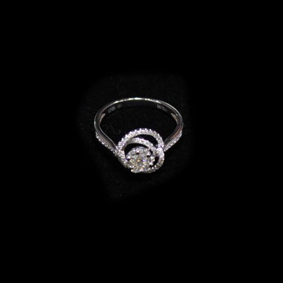 This is a gorgeous finger ring that shimmers with a high-gloss finish. The allover dazzling white diamonds add a touch of luxuriousness to the whole piece. This stylish ring fits comfortably on your finger.