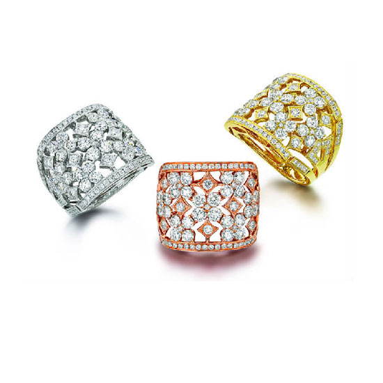 This is a diamond ring with a classic design. It features an 18K gold mounting which is adorned with charming white diamond stones. This diamond ring will add a touch of glamor and charm to your slender finger.