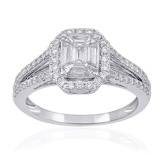 This diamond ring comes with a classic yet elegant design. The diamond is shaped into an emerald cut for additional shimmer. It effortlessly adds some glamor to your slender finger.