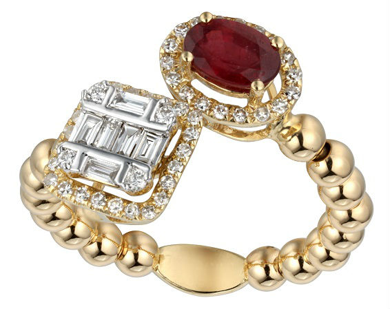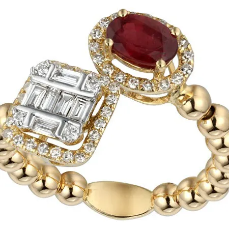 This fabulous diamond and gem stone ring with balls band design