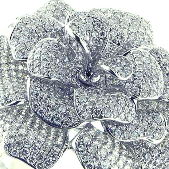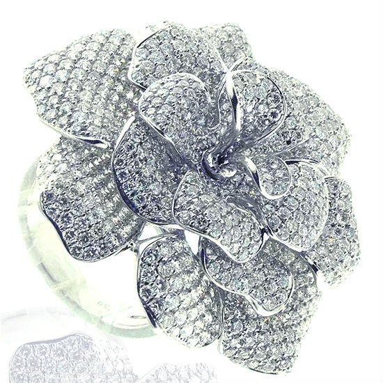 18K White Gold Rose ring, pave’ set with 10 carats of brilliant cut white diamonds.