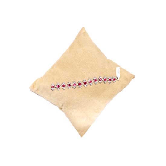 This bracelet comes with a fashionable and luxurious design. It is finely crafted with dazzling diamonds and ruby stones for added elegance. This diamond ruby bracelet is great for complementing your chic look.