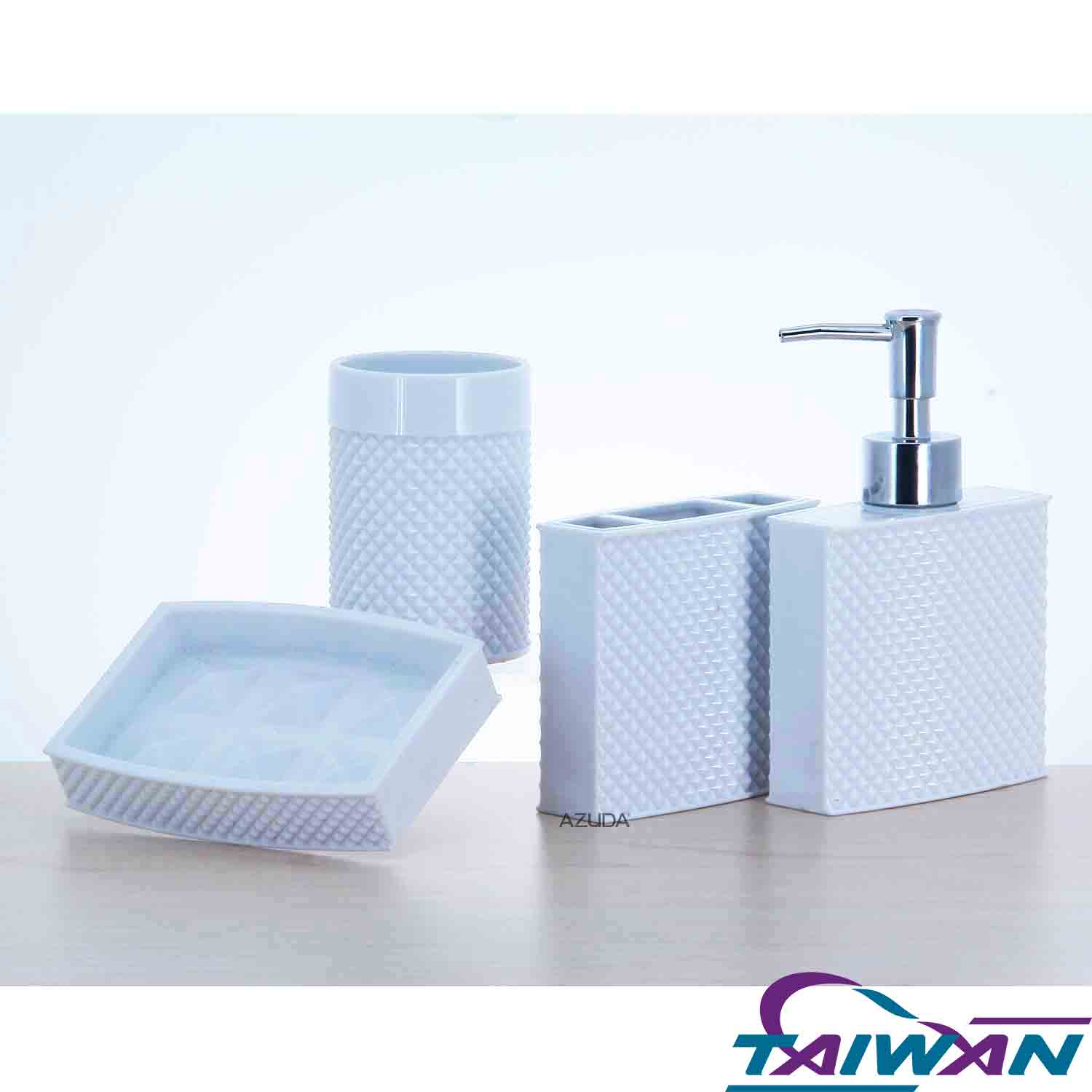 MS bathroom accessories including lotion dispenser, toothbrush holder, tumbler and soap dish. Diamond embossed design in opaque solid color with multi-surface give you sparkling refraction. Glassy transparent appearance can enhance wide variety of bathroom decorations. With diamond bathroom accessories, you will sure have more delicate visual enjoyment.