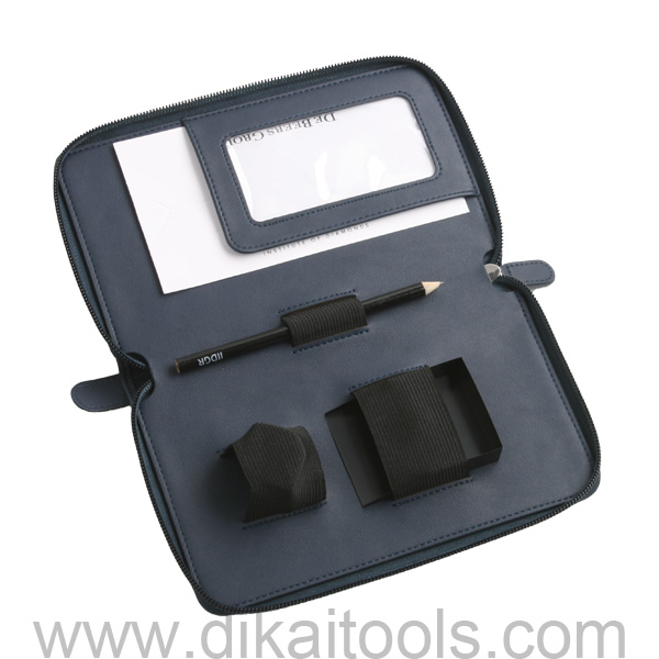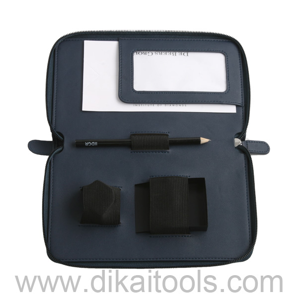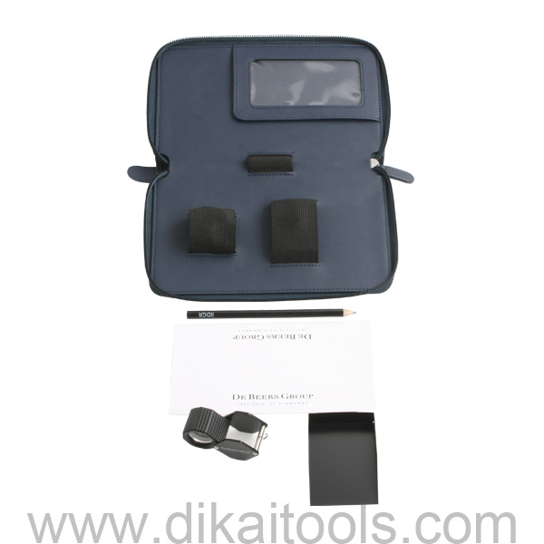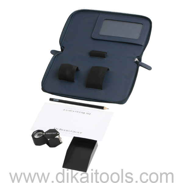 Diamond Tool KitKit contains:1x 20.5mm triplet 10x high quality Diamond Loupe1x Stainless Steel Diamond Tweezers1x Diamond Scoop M1x Pencil1x Diamond Shade card1x High quality Zip Case with logo embossing.