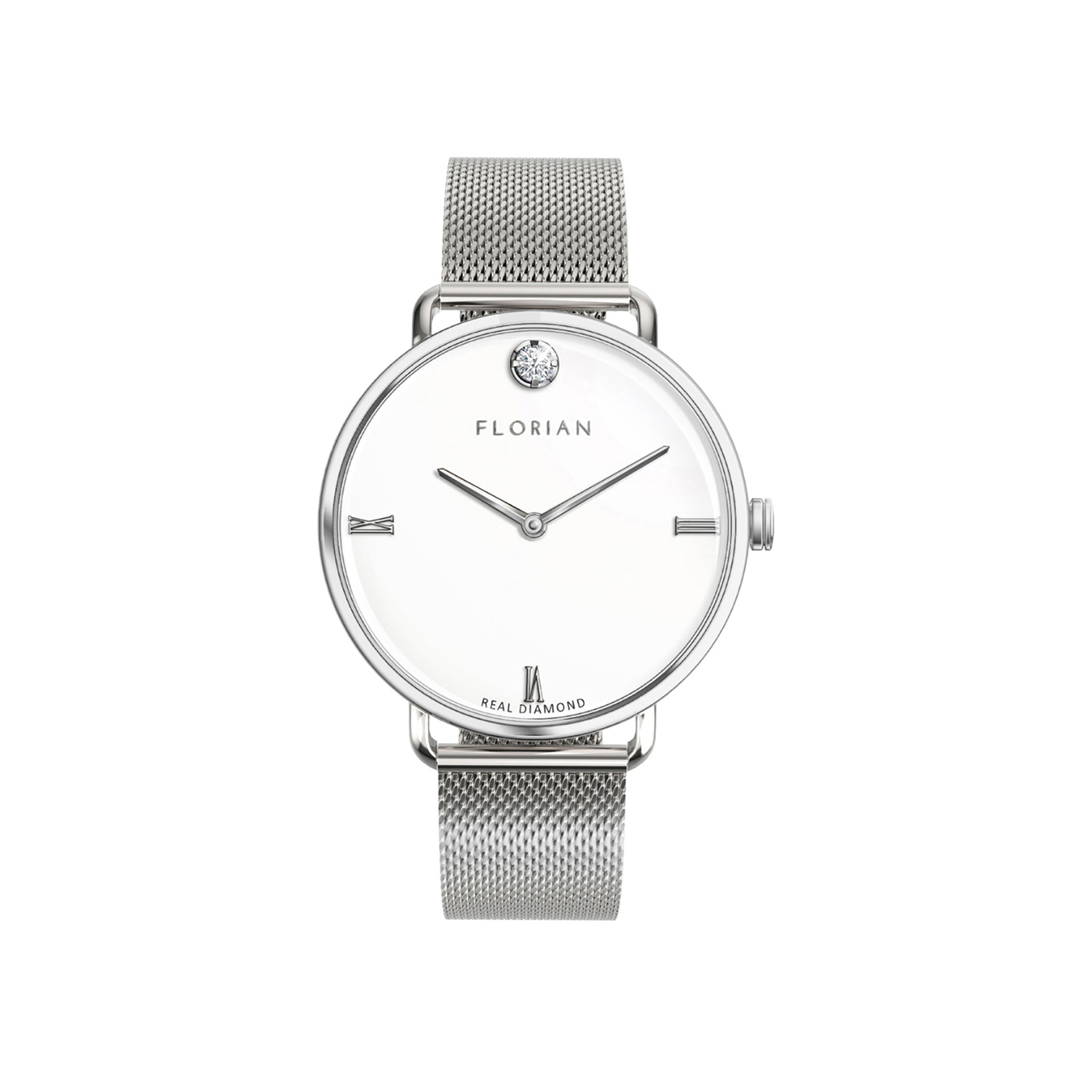 Make a bold statement by complementing your office attire with this mesh watch. Fashioned to last with a solid watch case, the silver watch is sure to catch every envious eye with a real diamond studded beautifully at 12 o’clock to denote the passage of time. Hugging your wrist closely with a silver mesh strap, it is sure to add an all-matching item to your timepiece collection.