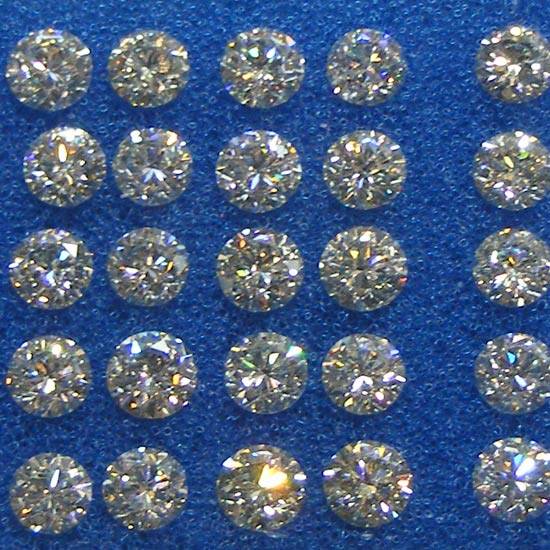 This is a collection of sparkling diamonds. Their round shape is a worth-noting feature, because the 360-degree symmetric surfaces allow them to reflect lights from every angle. Added with the faceted nature, which enables the maximal amount of lights to be reflected, this set of diamonds can create the ultimate beauty, and thus, very valuable.