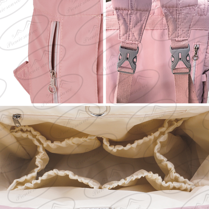 Two side pockets, one with zipper opening for tissue,another one for bottle.