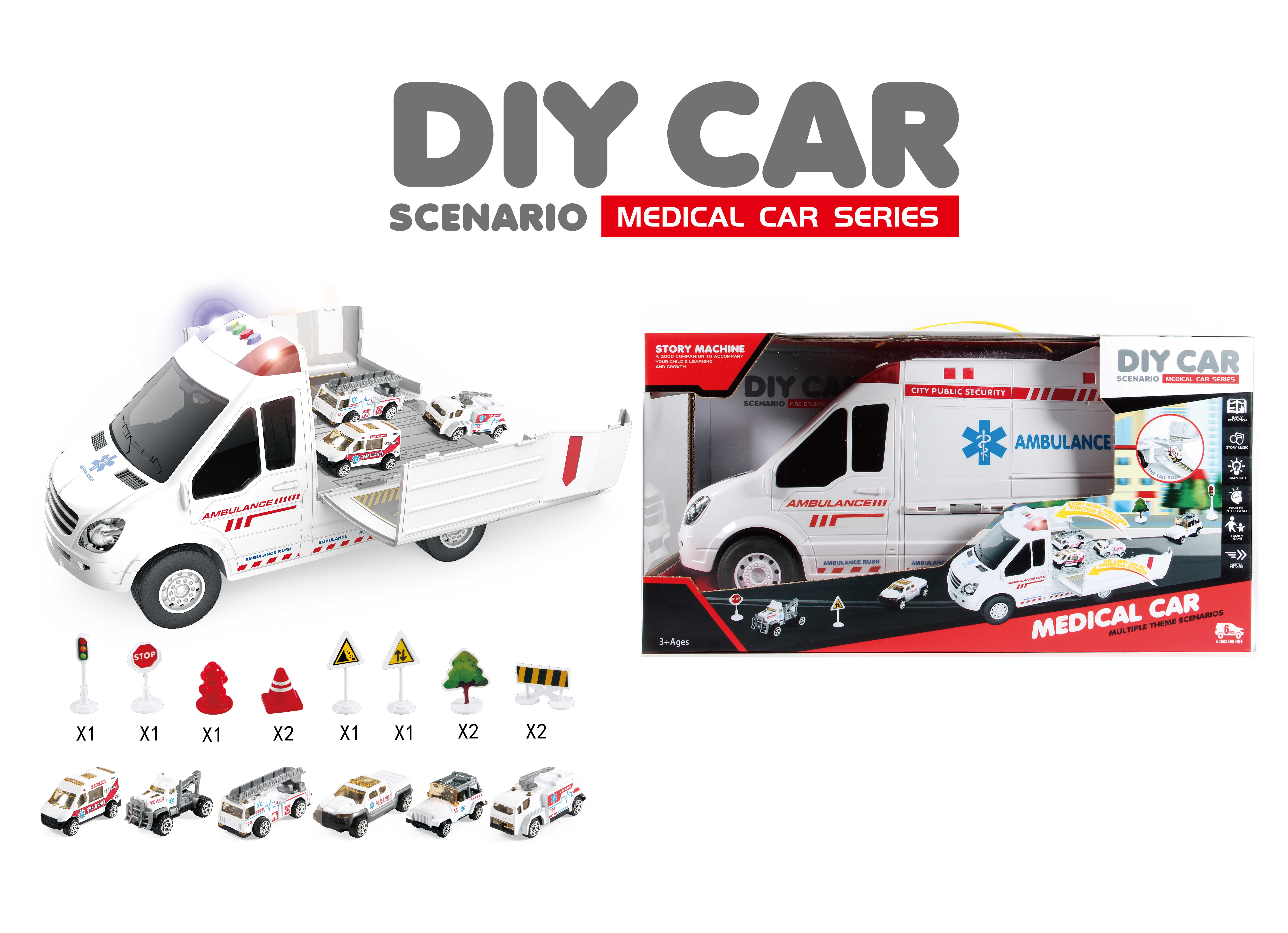 Die Cast Alloy Ambulance with packing lot W/Alloy Cars for pretend playing