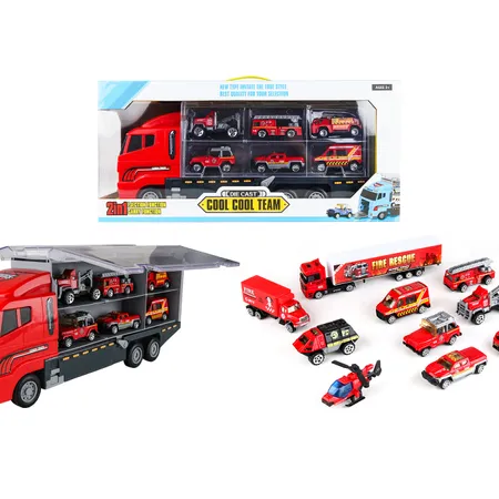 Die Cast Alloy Truck with Dual side openable door W/Alloy Cars for pretend playing