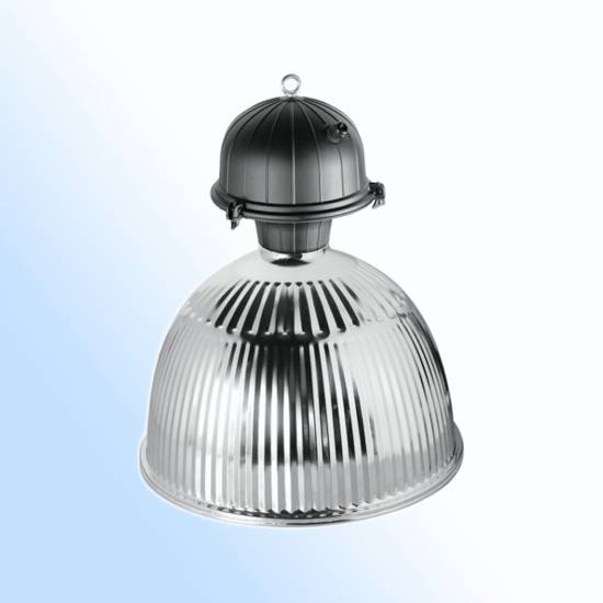 This is a high bay light in a compact design. It boasts a die-cast aluminum construction with a striped glass diffuser, giving your room an enchanting glow of light. This high bay lamp is durable and easy to install, which is a perfect for household and office applications.