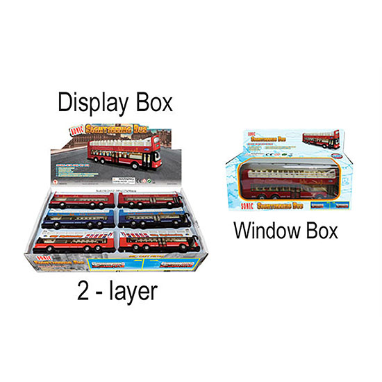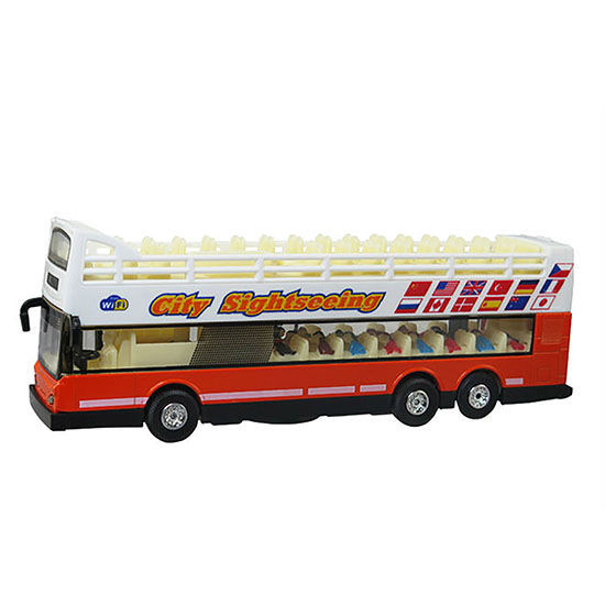 Flaunting a highly realistic design, this sightseeing bus is a great toy for display and playing. It has an open top design and comes with figures that can be displayed on the bus. The sightseeing bus has a colorful exterior adorned with country flags and offers light and sound effects.