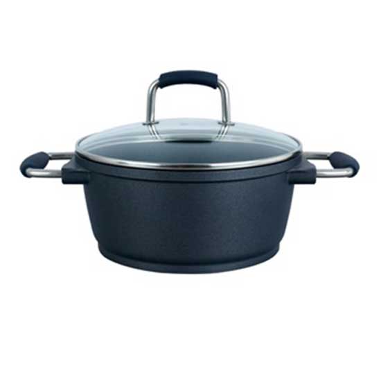 The die-casting casserole is made of high-quality aluminum. The padded handles offer comfortable carrying. The tough non-stick coating makes cleaning a lot more easy.