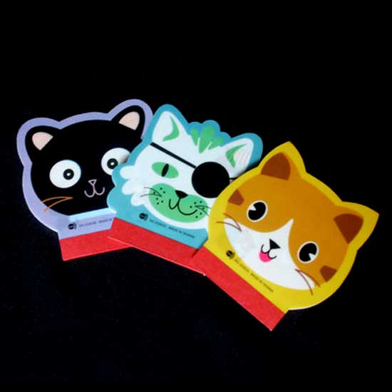 Highlighted is a memo pad in a neat die-cut shape. The cover is vividly printed with a lovely cartoon cat. Leave your short messages with these cute memos.