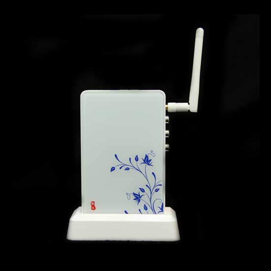 Showcased here is a 2.4GHz AV transmitter/receiver. Powered by Amedia's Technology, the digital media adapter delivers video and audio signal wirelessly over distance while maintaining the original quality. The digital AV sender enables a wireless connection between video/audio sources (DVD, VCR, PCR, STB and PC) and video/audio display (TV and flat panel).