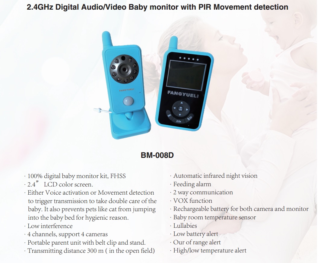 2.4GHz Digital Audio/Video Baby monitor with PIR Movement detection