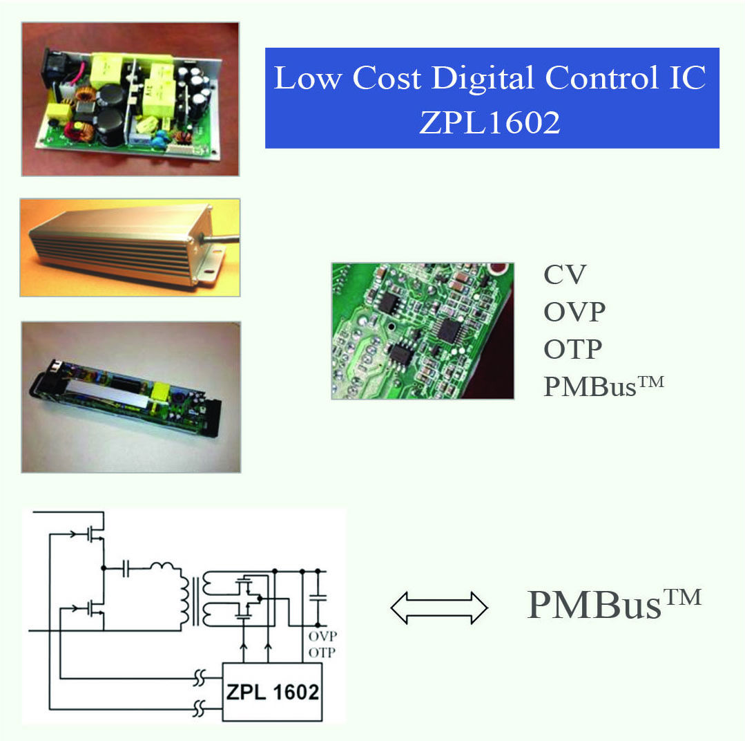 One chip solution for resonate LLC converter and Sync. Rect. solution. With powerful digital control embedded but with the easiest use as of analog chip. Features of ZPL1602 including output regulation control, OVP, OTP and system protection function, as well as a precise driving signal for the synchronous rectification to boost the overall efficiency to maximum level. Thanks for the digital control mechanism and the strength of high performance MCU, all above featues is embedded without the need for external programming.