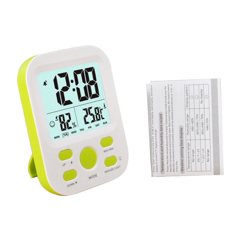 Wholesale digital humidity display alarm clock with smart light calendar clock