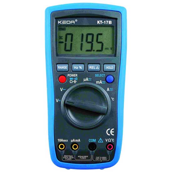 This digital multimeter measures voltage, current and resistance. The multimeter comes with a large digital display for easy reading. The rotary switch allows quick change of the measured unit.