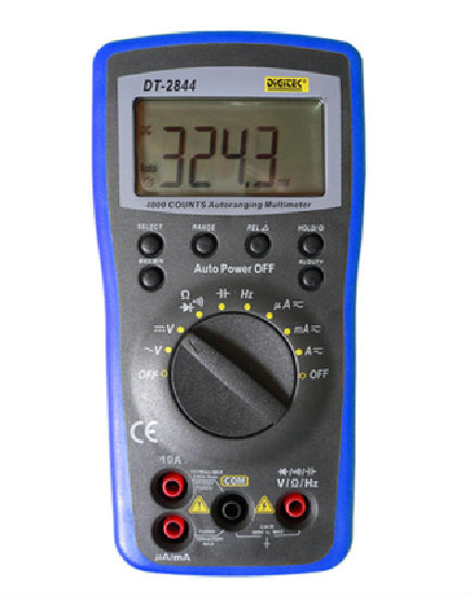 *Display: 4000 counts *Auto/Manual Range *Basic accuracy:0.5% *Diode check/Continuity Buzzer *Relative Measurement *Max/Min Measurement *Data Hold Specification: *DC Voltage: 400mV/4/40/400/600V *AC Voltage: 400mV/4/40/400/600V *AC Current:400/4000uA/40/400mA,4A/10A *DC Current:400/4000uA/40/400mA,4A/10A *Resistance:400ohm~40Mohm *Capacitance:40nF~4000uF *Frequency:1Hz~10MHz