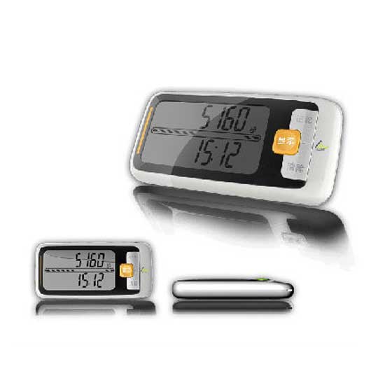 This displayed pedometer comes in a rectangular shape with a portable design. It comes with a large digital display for easy and comfortable reading. This digital pedometer works well as a step, distance and calorie counter.